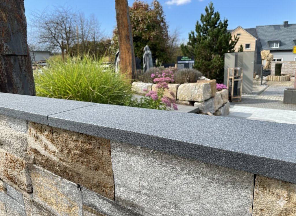 Die Granit Nero Assoluto Mauerabdeckung bietet optimalen Schutz für Mauern und verleiht ihnen zugleich eine edle Optik. Dank der tiefschwarzen Farbgebung und der hochwertigen Bearbeitung fügt sich die Abdeckung harmonisch in verschiedene Gestaltungskonzepte ein. Die geflammte und wassergestrahlte Oberfläche sorgt für eine angenehme Haptik und eine rutschhemmende Struktur.