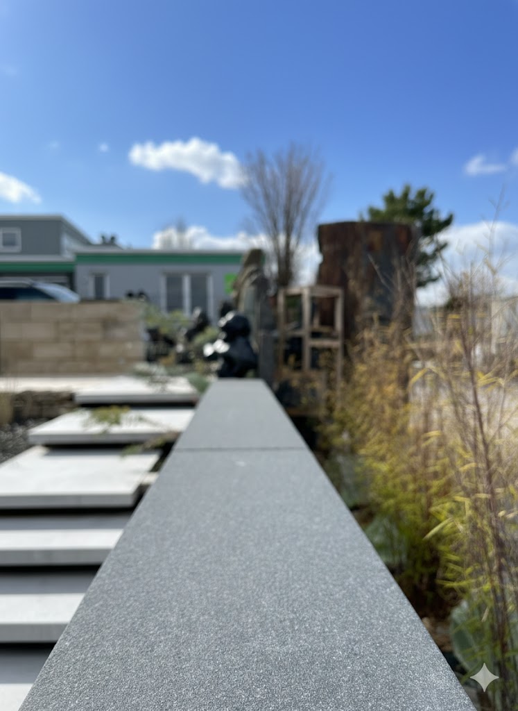 - Oberfläche und Seiten: Geflammt und wassergestrahlt für eine strukturierte, rutschfeste Optik