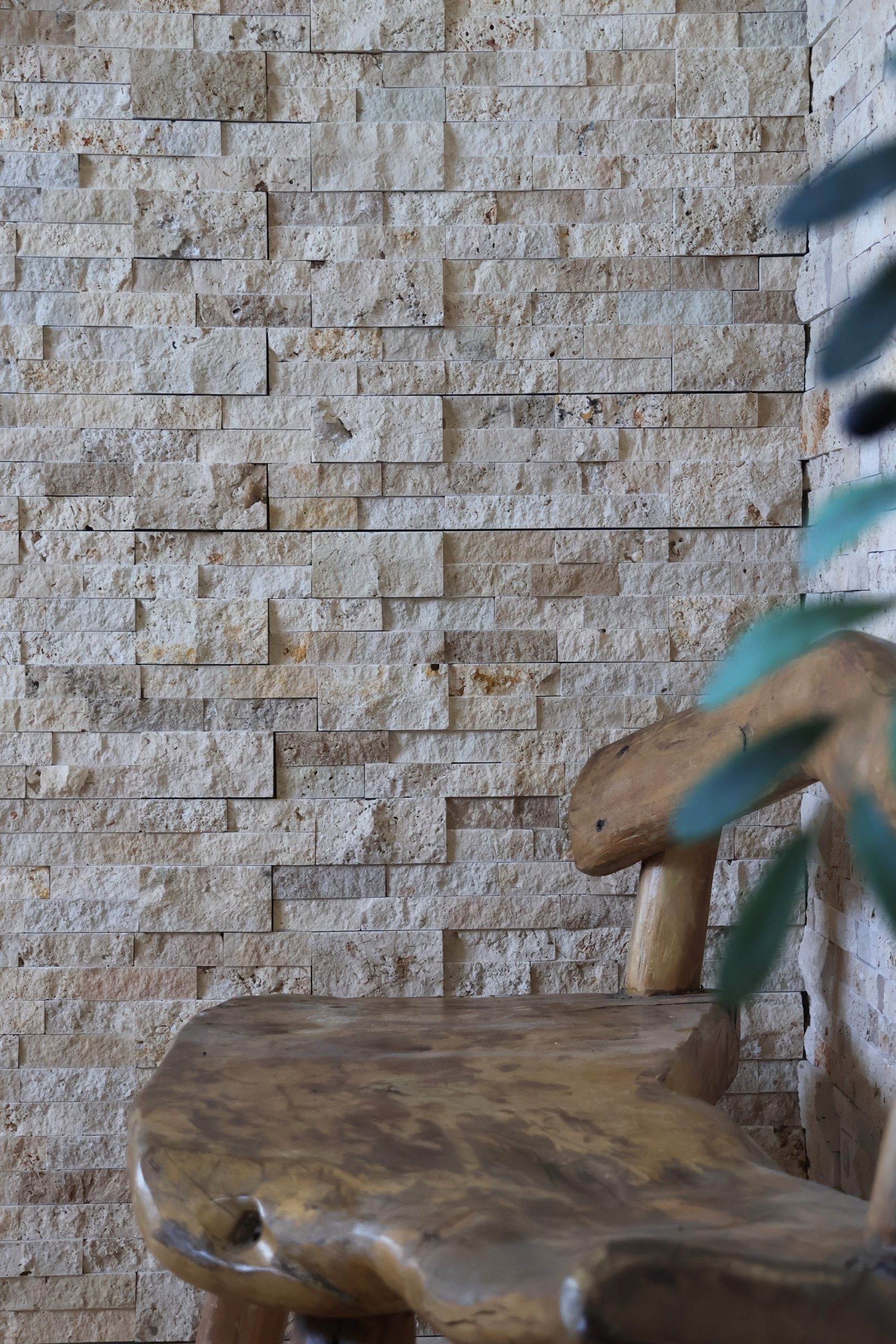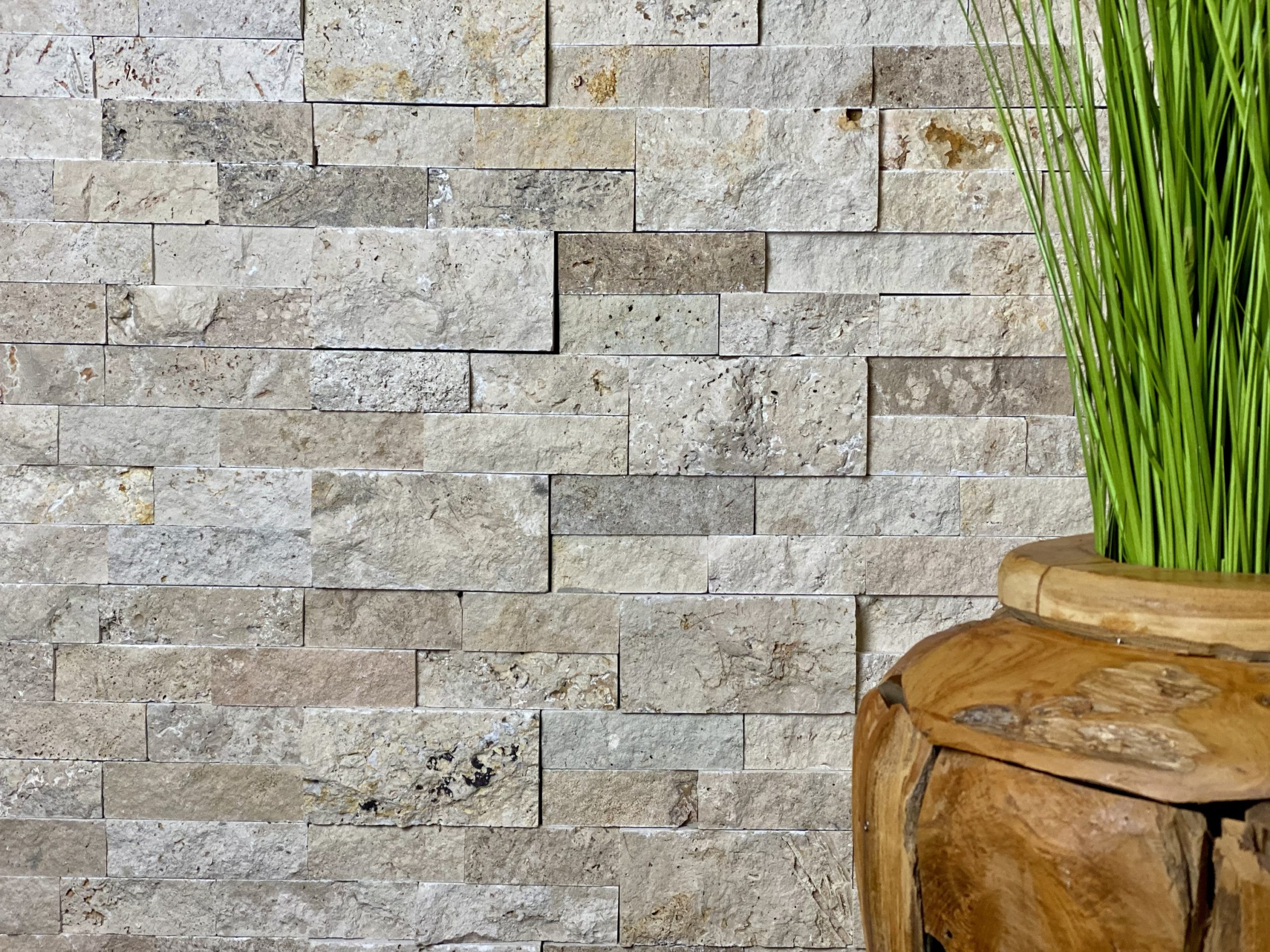 Die Travertin Verblender in creme-beige bringen mediterranen Charme und natürliche Schönheit in Ihr Zuhause. Die gebrochene Oberfläche sorgt für einen lebendigen Charakter, während die gesägten Seiten eine präzise und gleichmäßige Verlegung ermöglichen. Die attraktiven Farbtöne reichen von zartem Creme bis warmem Beige und verleihen jedem Wohnraum eine behagliche Atmosphäre.